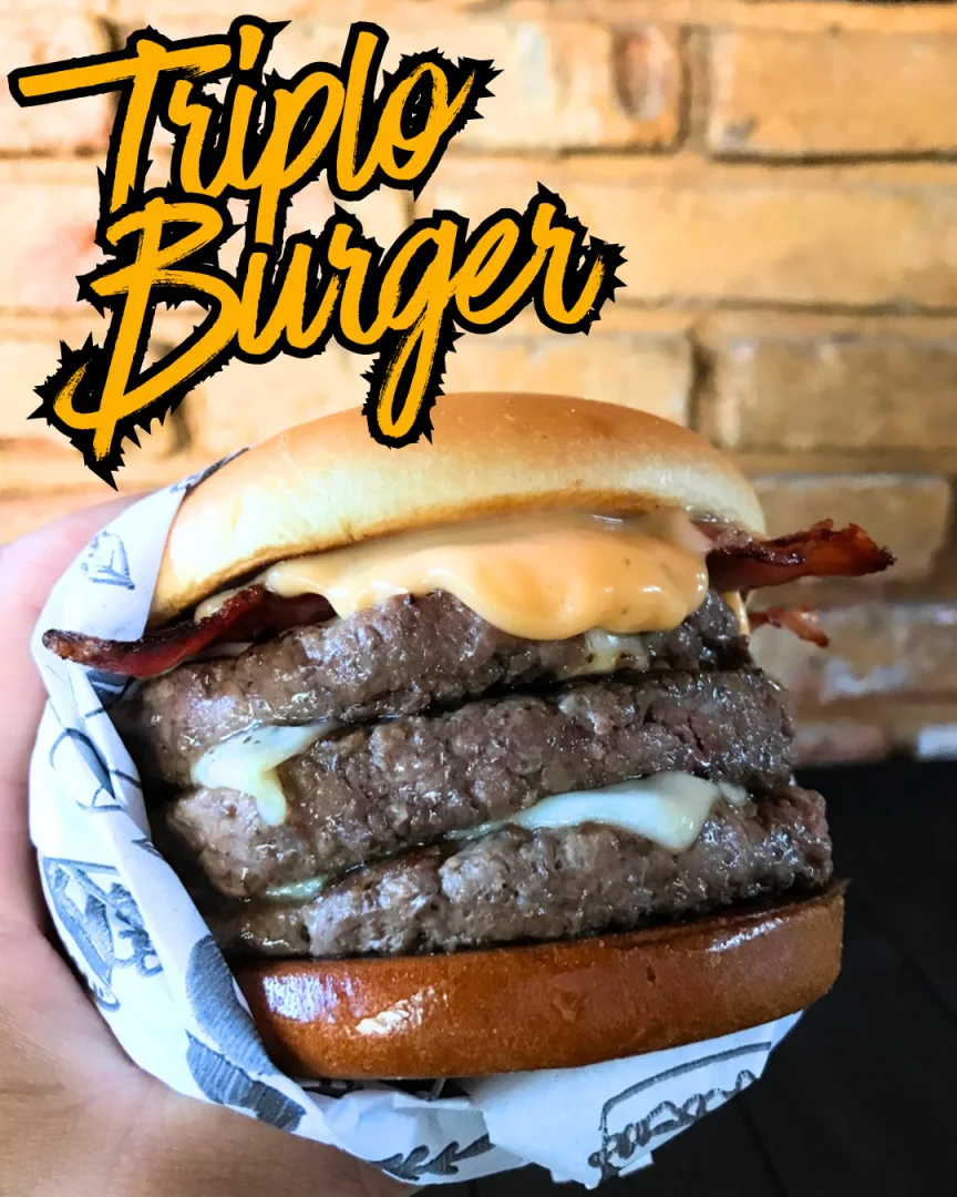 Pão de brioche, 3x blend 150g, 3x queijo muçarela, bacon e molho especial.